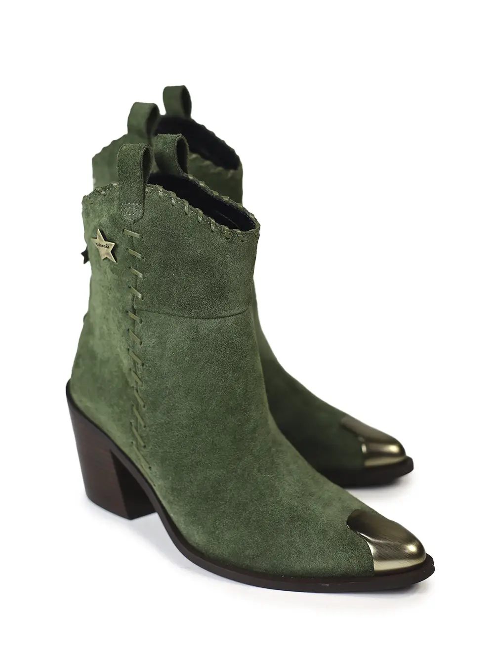 Bota em Camurça Verde e Metal na Biqueira