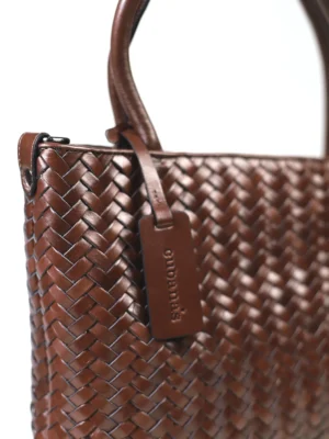 Mala Midi em Pele Castanha Entrançada