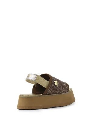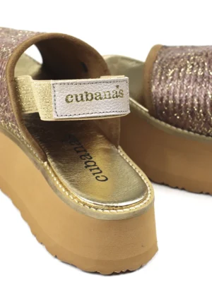 Sandália de plataforma com efeito palha e elástico traseiro. A sandália ADD101BROWN da Cubanas traz consigo a mistura da elegância com as linhas clássicas que enaltecem este modelo.